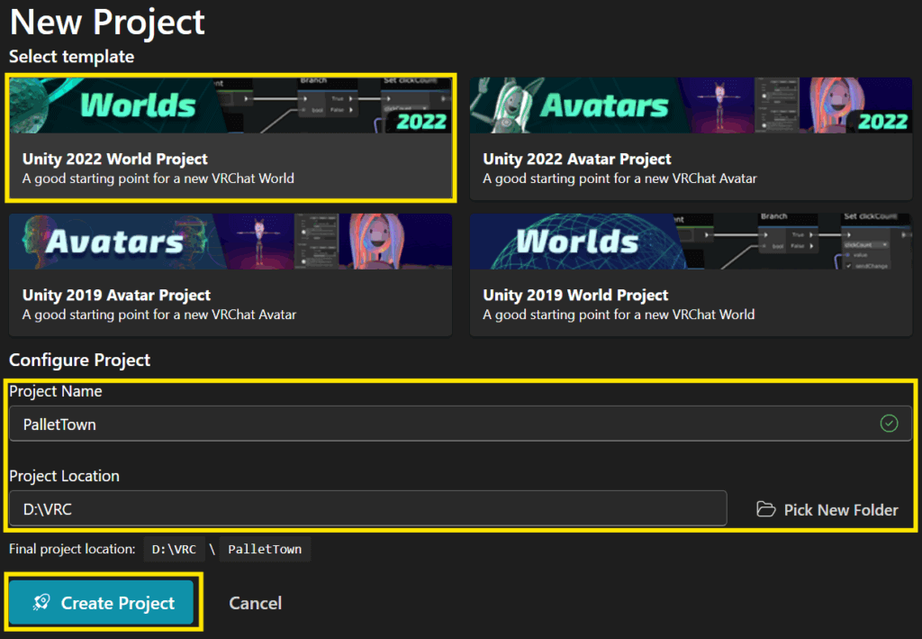 2.以本教學為例,選擇Worlds,在中間的Configure Project設定專案名稱和儲存位置,按下Create Project